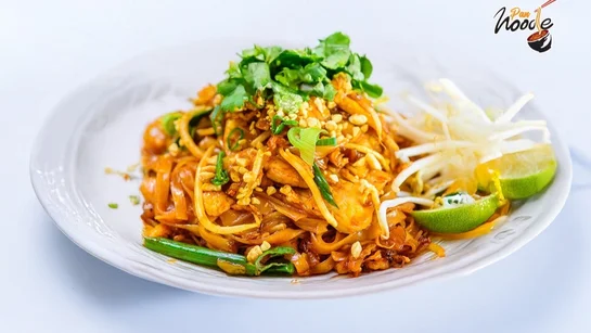 Tender chicken in sweet-tangy sauce rice noodles, chicken, onion, spring onion, beansprout, tamarind sauce, crushed peanuts, and lime.